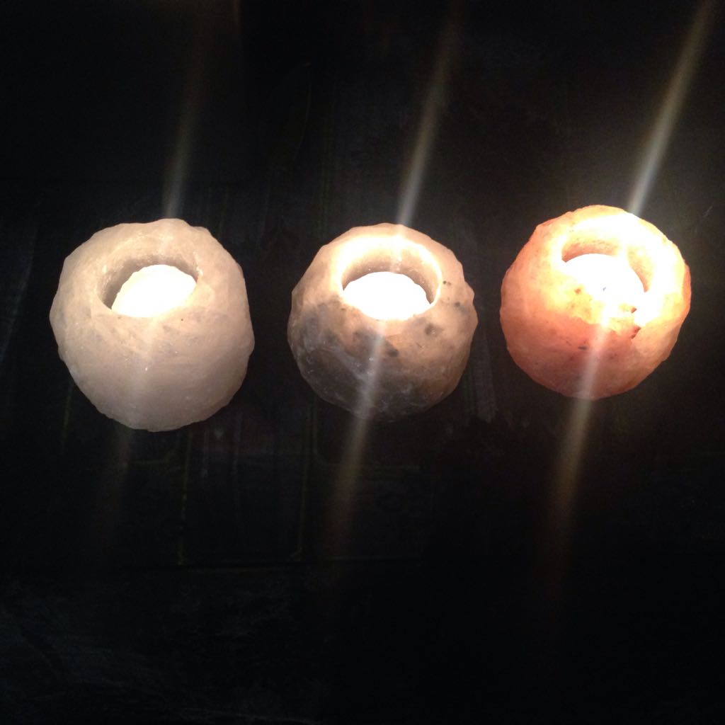 Ce set contient 3 photophores en sel de l’Himalaya que vous pouvez illuminer avec des bougies réchaud du commerce afin de diffuser une lumière douce dans votre pièce.